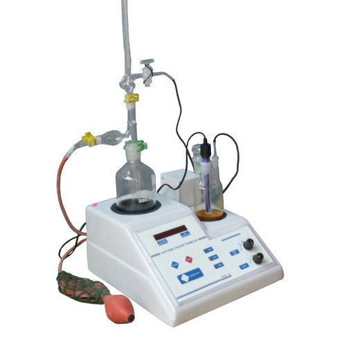 KARL FISHER TITRIMETERS Auto Karl Fisher Titrimeter having array of LED’s provided with inbuilt stirrer, auto zero burette, adjustable timer, dual platinum electrode & other accessories